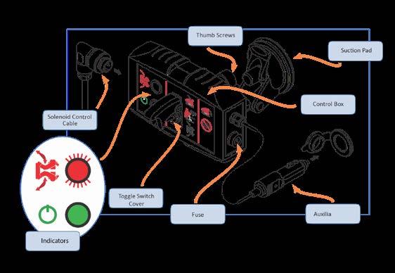 Die Steuereinheit enthält ein Sicherheitslogiksystem. Wenn ein Fehler erkannt wird, werden die Ausgangssteuerungen deaktiviert, die rote Anzeige blinkt kontinuierlich. Im Fehlermodus ist keine Umschaltung auf das Greifmodul mehr möglich, der Tiltrotator ist weiterhin aktiv.