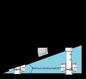 > Bei unförmigen Lasten ist ein maximaler Winkel von 20° zulässig. Dazu muss die Aufnahme der Klemmbacke am zentralen Klemmzylinder auf das Kugelauge umgebaut werden.