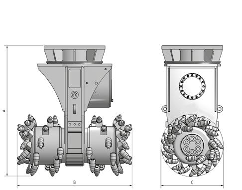 Les fraises spéciales sont équipées d'un engrenage droit exceptionnellement robuste, entraîné par des moteurs hydrauliques à couple élevé. L'engrenage est si robuste qu'il peut être utilisé sans problème même dans les applications les plus difficiles.