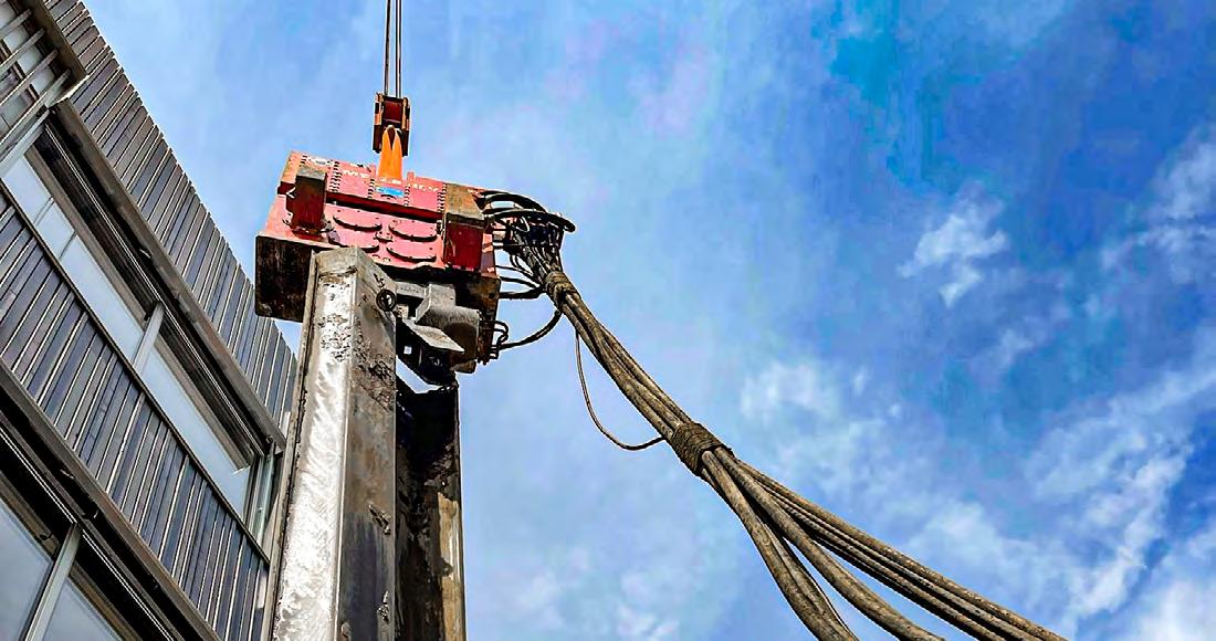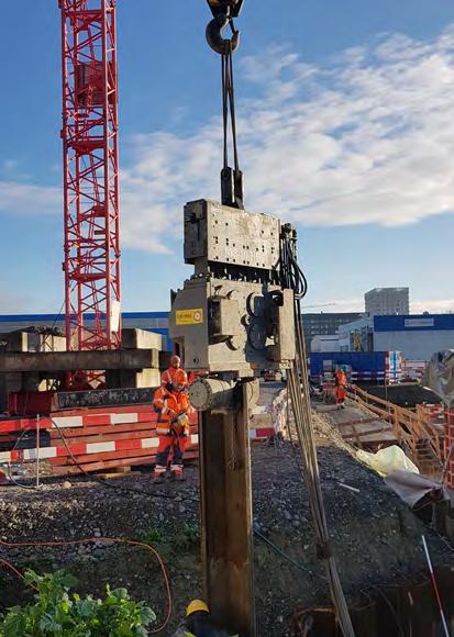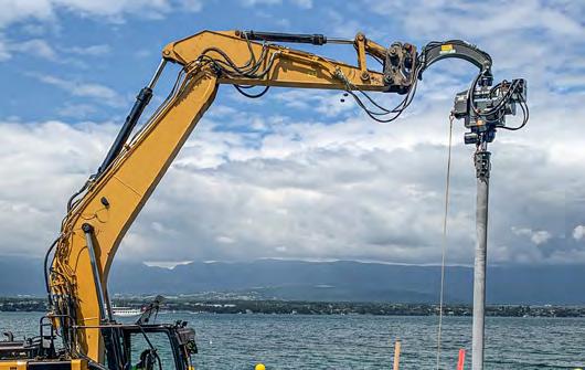• mise en place de profilés de palplanches et vibrofonçage de tubes (avec disposition de pinces de serrage modifiée)