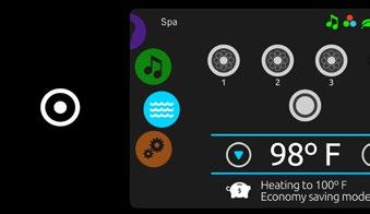 To start or stop an accessory (pump, blower, light), touch the associated icon. Icons will become animated when their accessory is turn on, and animation will stop when turn off. Icons on the screen will reflect the speed or state of the devices running on your spa. When an accessory has more than one speeds press the button until it reaches the desired speed.
