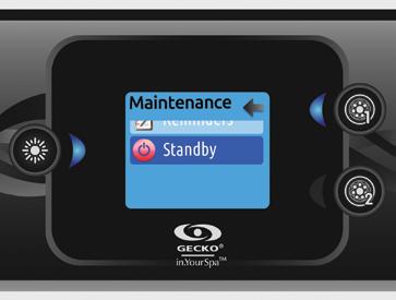 Once Standby mode has been activated a screen will appear to show that pumps are stopped. The normal spa page will return at the end of maintenance.