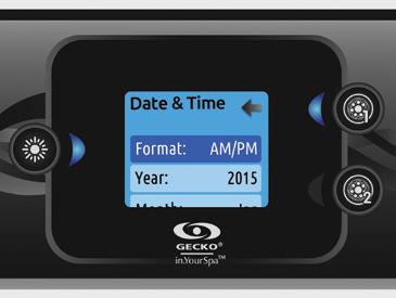 When you change the display orientation, the contextual options and arrow keys adjust to the chosen orientation. The Mode and Menu keys remain unchanged, as well as the accessory keys in the main spa menu.