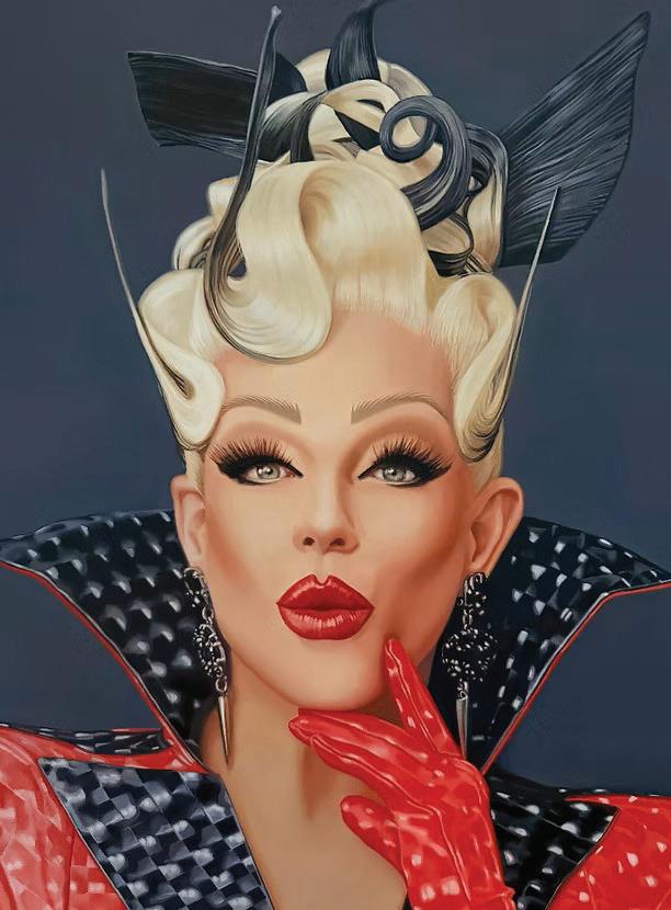 create something extraordinarily unique. Glamorous makeup, vibrant and expertly sculpted wigs, extravagant costumes, skyhigh heels, and, of course, the sparkly, ornate jewelry - every detail comes together to complete the dazzling and vibrant persona. Drag to me is the epitome of beauty. Nobody does it better than drag artists. Big, bold, and beautiful. I can’t think of a more inspiring subject to paint than drag, especially now that I’ve started this project. All the drag artists I have painted