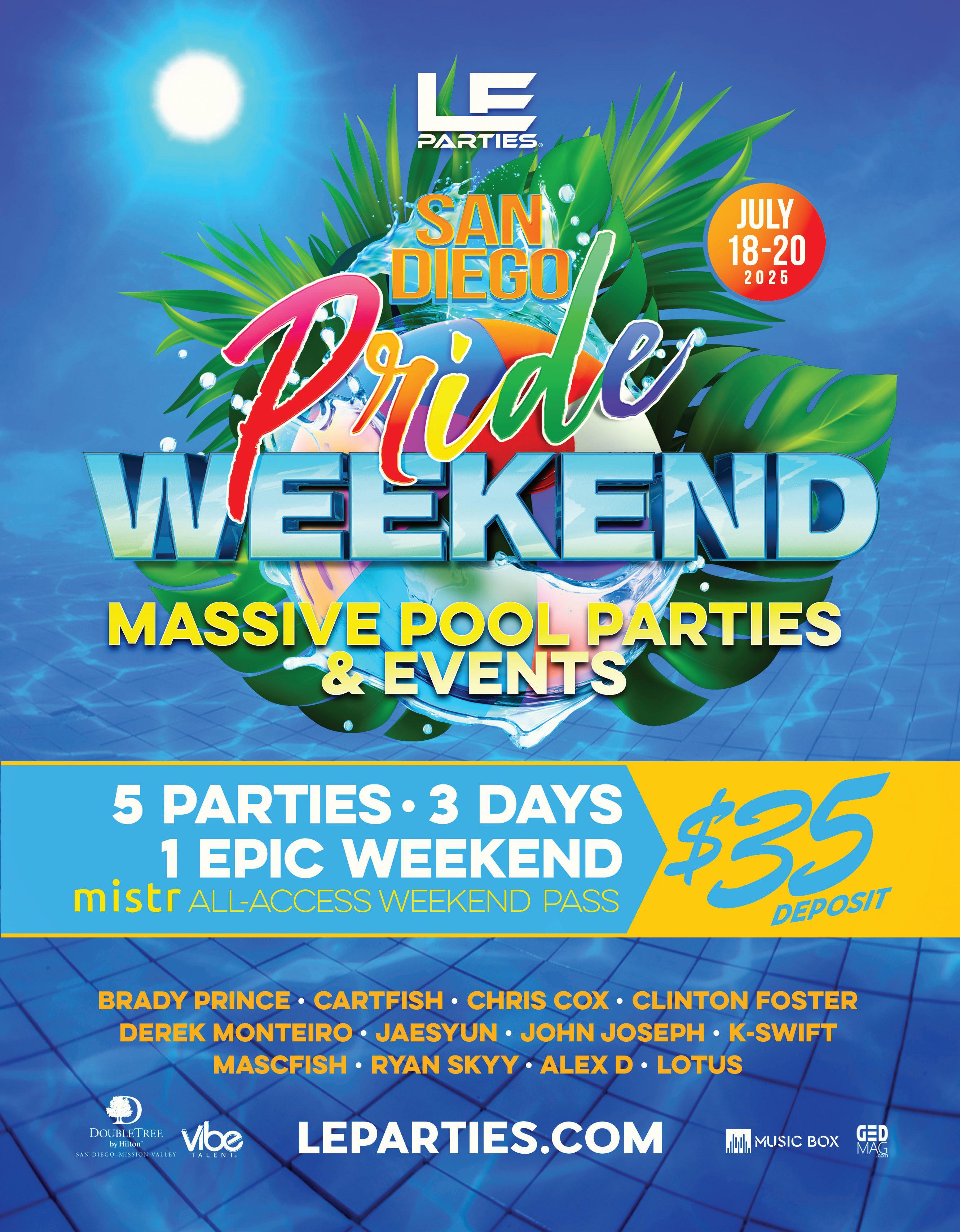 So, whether you’re poolside, on the dance floor, or catching your breath in between, crack open these pages and get inspired. Please visit us on the web at GEDmag.com to read the current digital issue and follow us on Facebook and Instagram @ GEDmagazine to stay up to date on exciting new event announcements coming soon. Gay Entertainment Directory is here for your entertainment!