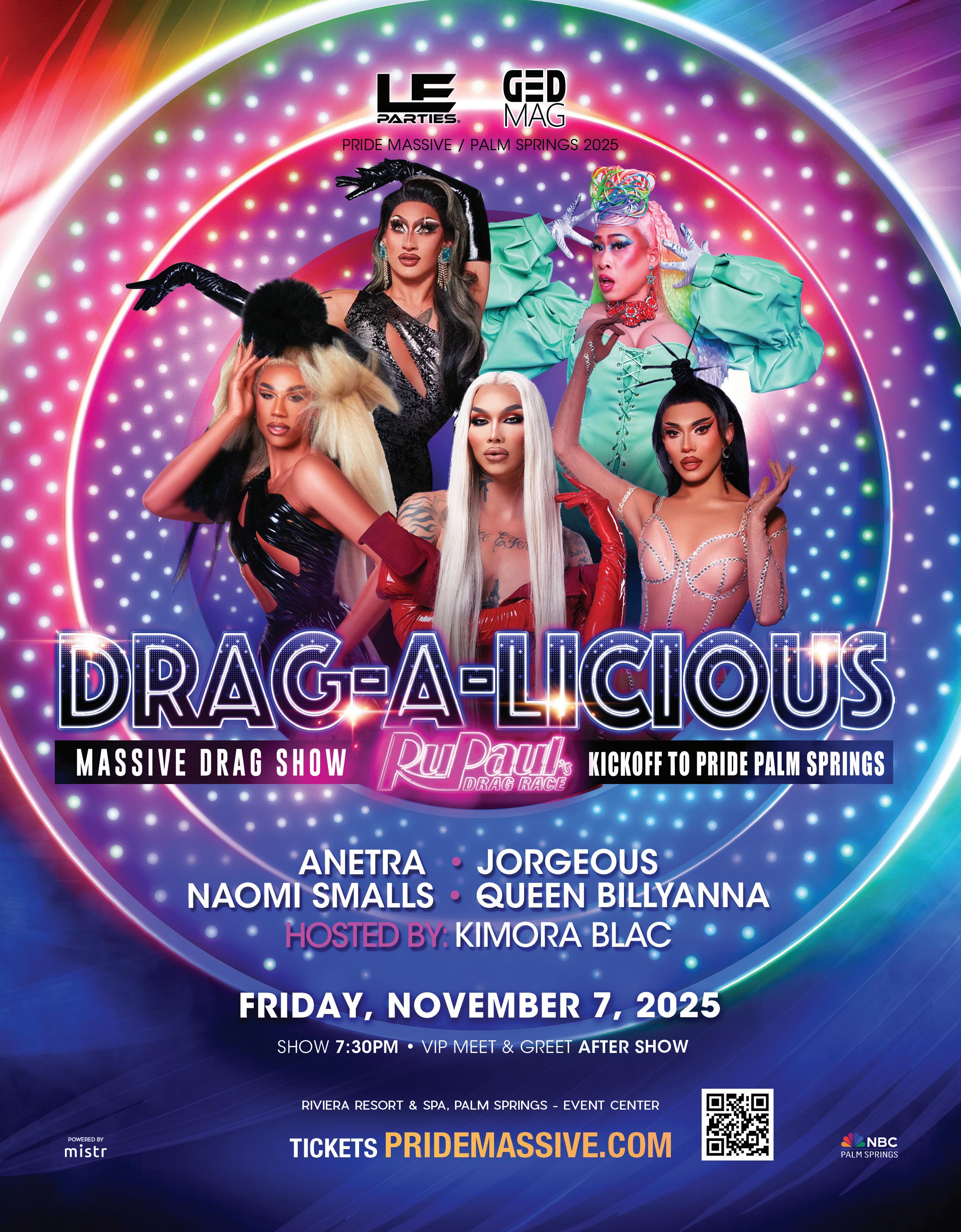 For more on Pride in Palm Springs, pick up a copy of our GUIDE TO PRIDE PALM SPRINGS for all the events during pride weekend and a map of the town. From drag