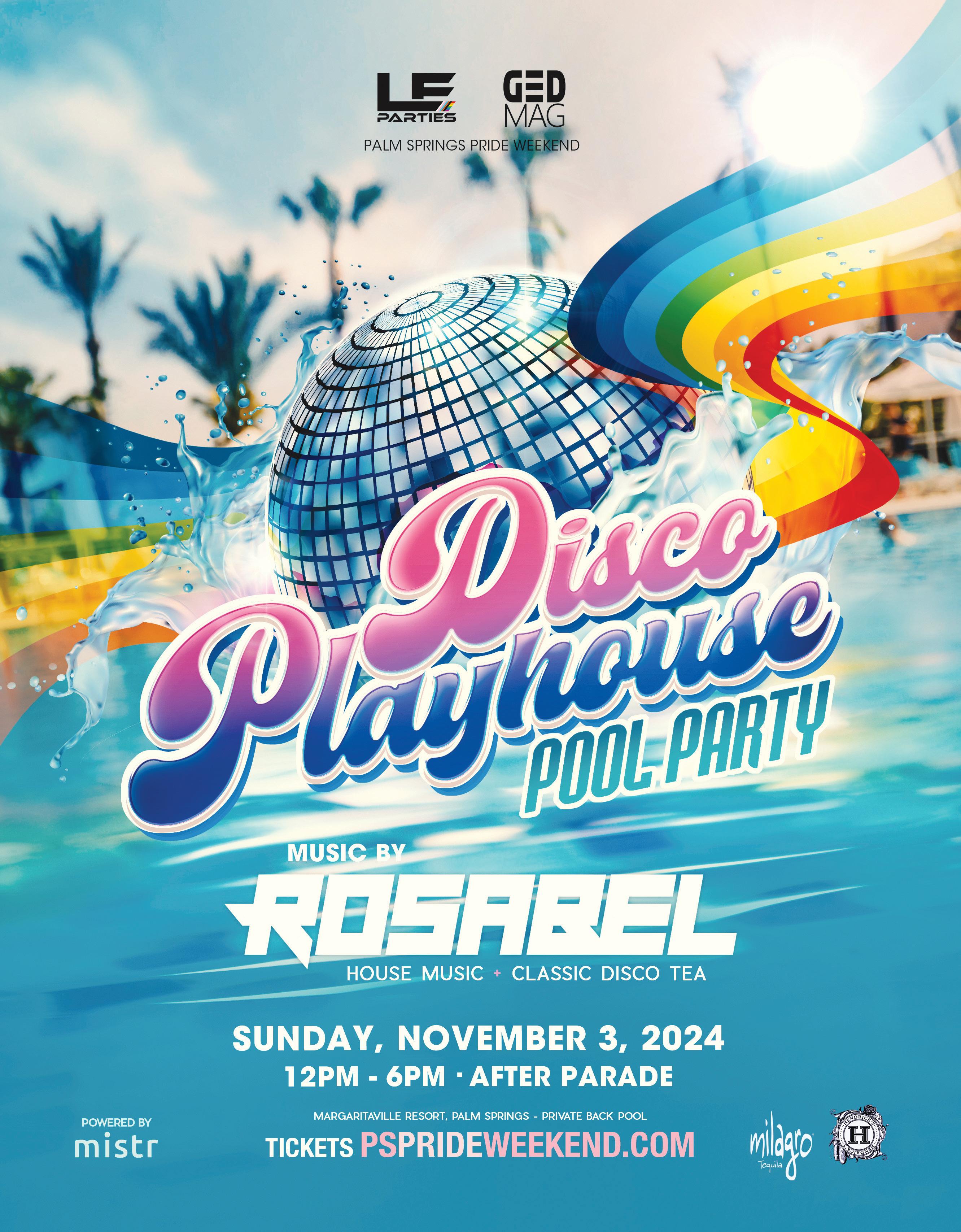 And speaking of Pride, GED has several events during Palm Springs Pride Weekend –from DRAG-A-LICIOUS, to THROUGH THE LOOKING GLASS, to DISCO PLAYHOUSE Pool Party, to the largest pool party during Pride weekend, and our signature event - COLOSSAL POOL PARTY. Visit GEDmag.com and click on the PALM SPRINGS PRIDE tab for all the events, information, VIP Passes, and tickets.