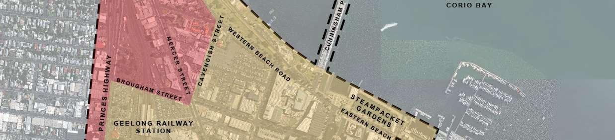 The study area includes Central Geelong as shown within the dashed boundary below. Generally the boundary extends from Latrobe Terrace to Swanston Street and from McKillop Street to Corio Bay.