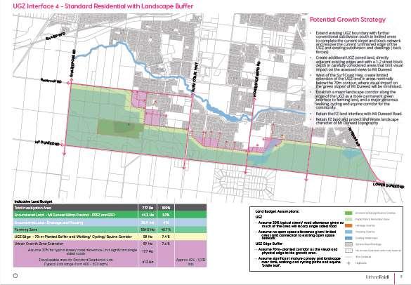 Subdivision of this site into larger residential allotments would provide an improved transition between the urban growth and farming zoned land which currently proposes a solid boundary fence.