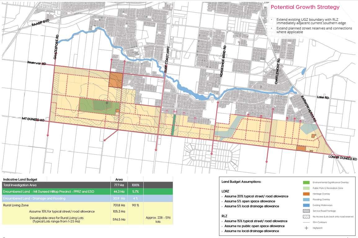 •Larger (1.5-3ha) rural living lots on the land north of Lower Duneed Road and on thecorners of the Surf Coast Highway and Barwon Heads Road.
