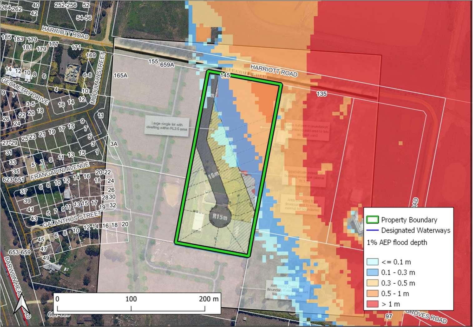 Figure 2 – Potential subdivision layout submitted by the landowner with consideration given to flood levels. Source: landholder submission