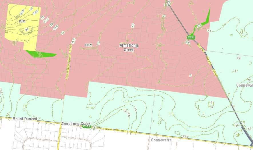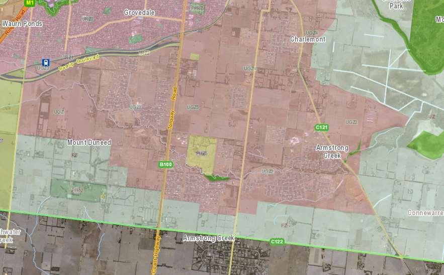 The lot was previously subject to the Flood Overlay (figure 3 below) and thus was excluded from the urban area under the original Armstrong Creek Framework Plan. Under amendment C339 part 2Flood overlays (Lower Barwon and Moorabool rivers and Bellarine Peninsula Coastal Hazard) the flood overlay extent has been revised down on the subject land (figure 4).