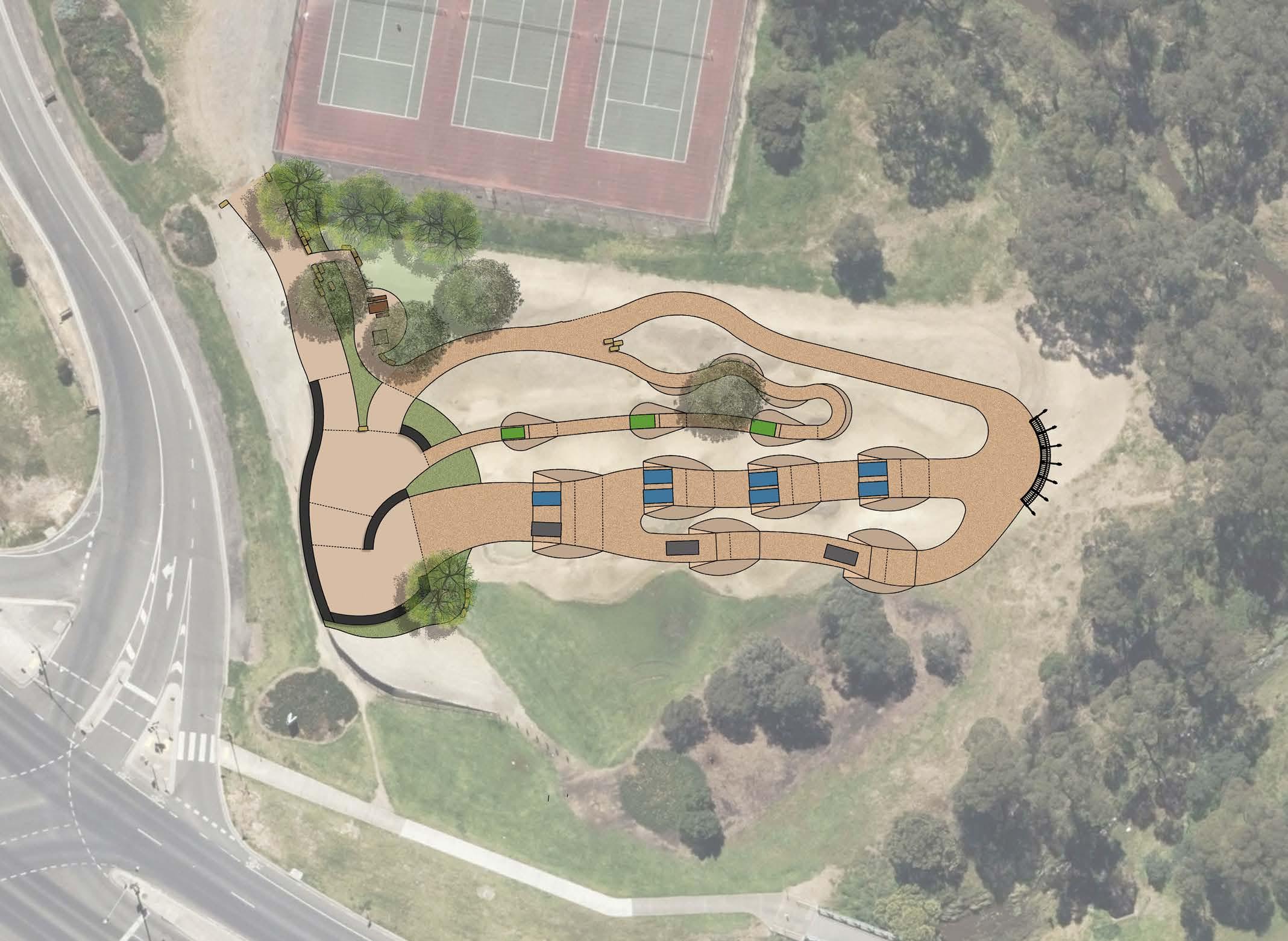 The new jumps footprint maximises use of natural slope and brings the end of the jumps close to the main entry. This orientation increases the length of the runs and makes the jumps a focal point when entering the park.