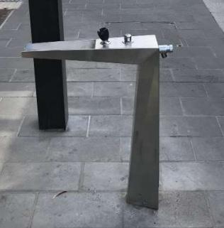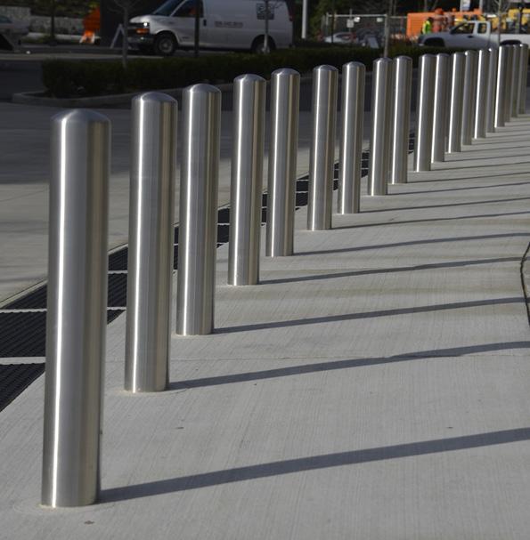 Bollard, stainless steel, dome custom top, with sleeve for removable bollard at key locations.