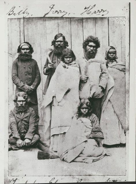 Wadawurrung group with Billy (Willema Baa Ni Ip), Jerry (Dan Dan Nook) and Harry 1852