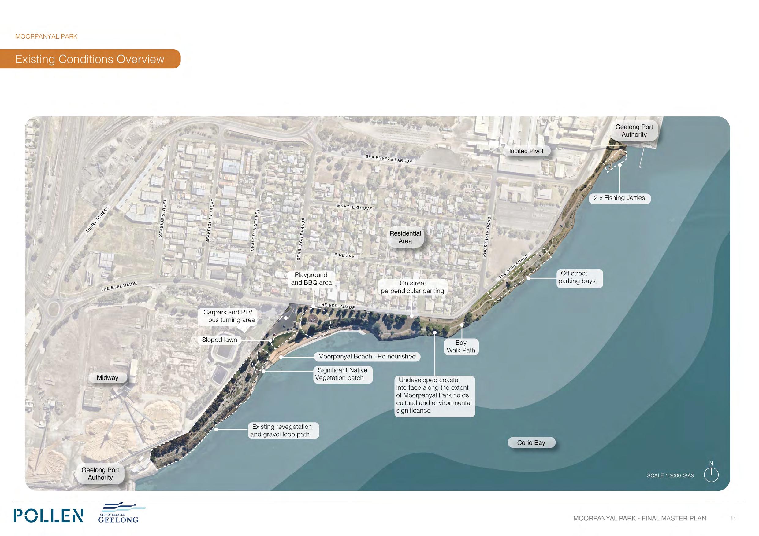 Concurrently to this Master Plan, City of Greater Geelong is developing a Marine and Coastal Management Plan that will apply to the wider Corio Bay area. The intention is for this Master Plan to form part of the overall Corio Bary Precinct Plan.