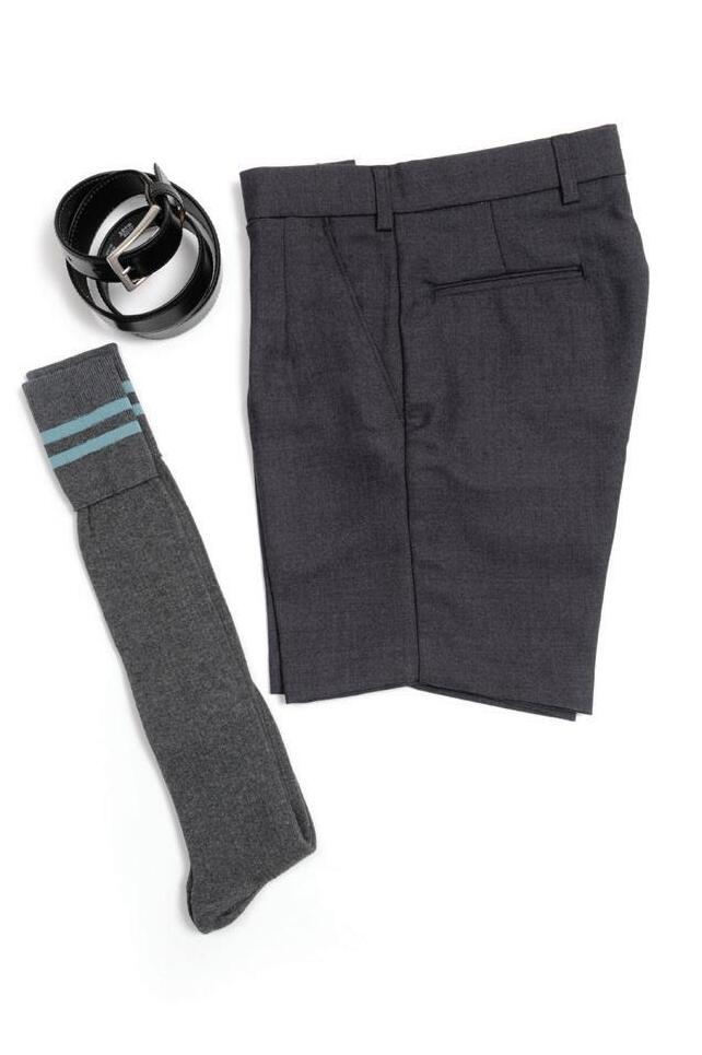 - Socks: long grey socks with blue stripe worn with shorts or trousers, short grey socks may be worn with shorts in summer