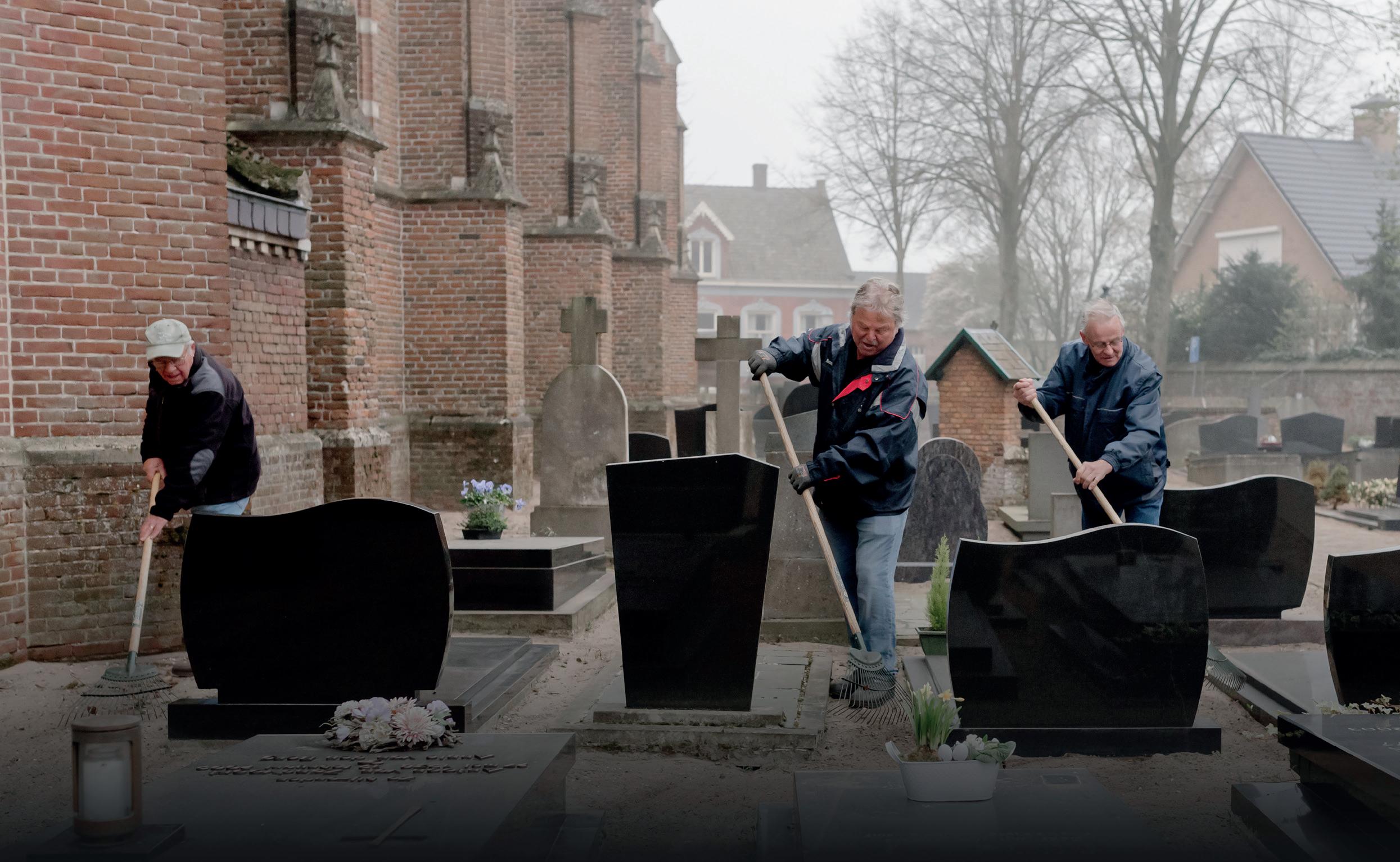 Er is waarschijnlijk geen andere plek in ons dorp waar de aarde al zo vaak is omgewoeld. Maar liefst tweemaal per week trekt een groep vrijwilligers, met een schoffel in de hand, over het Geffense kerkhof. Met eerbied gaan deze mannen het onkruid te lijf zodat de laatste rustplaats van onze overleden dorpsgenoten er netjes bij ligt.