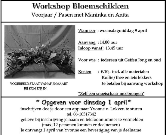 KOPY INLEVEREN T/M: 24 maart (geldt ook voor e-mail kopy) redactieadres: Acaciastraat 14 e-mail: torenklanken@geffen.nl