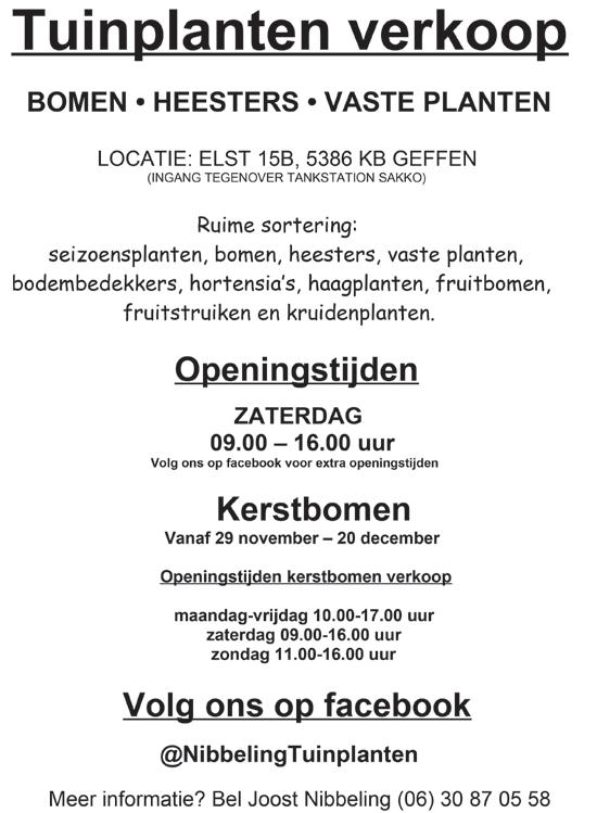 Nuland: Expert van Erp,Albert Heijn, Het goede Gevoel, Coremans Bouw Interieur Styling, Tielemans, Van Lith Elektrotechniek B.V., Verstappen van Amelsvoort B.V. Vinkel: Danny’s Eeterij, de Molen “de Zwaan”, Den Driehoek, ’t Venster, FPH Ploegmakers Geffen: Jumbo van Herpen