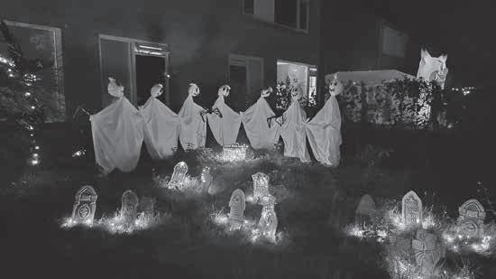 Na het grote succes van voorgaande jaren werd ook dit jaar weer een bloedstollende spooktocht georganiseerd in Buurt D’n Berg. Wekenlang werkte de werkgroep aan een angstaanjagend verhaal dat zelfs de stoerste deelnemers kippenvel bezorgde. Dit jaar stond alles in het teken van “Het Geffens Huis