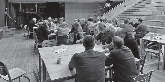 Vervolgens is er per tafel een kwartiertje doorgepraat over de mogelijkheden en de belangstelling. De belangrijkste tips werden daarna gezamenlijk doorgenomen. Dit ging vooral over de aanpak richting de gemeente en de organisatie van zo’n vereniging. Afgesproken is dat iedereen laat weten of er na deze bijeenkomst nog steeds belangstelling is om door te praten over zo’n project. Uit de reacties blijkt dat een aantal mensen actief wil meewerken en dat een groot aantal mensen op de hoogte wil blijven van de ontwikkelingen.