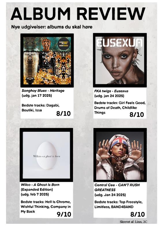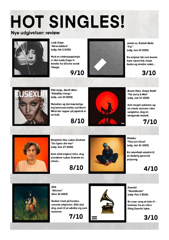 d. 2. februar og store kunstnere som Kendrick Lamar, Doechii, Beyoncé, Billie Eilish og Chappell Roan var aftenens hovedpersoner. Lamar løb med hele 5 Grammys for sit Drake diss track “They Not Like Us” og Chappell Roan vandt titlen som “Best New Artist”. Gennem hele Gram mys historie, har ceremonien dog været kritiseret for manglende repræsentation af kvindelige og sorte kunstnere blandt nomina tionerne og vinderne. Blandt de nominerede og vindende kunst nere i 2025, var kun 31 procent kvinder, og i kategorien for bedste album blev Beyoncé med sit album “Cowboy Carter” den første sorte kvinde i 27 år, der har vundet “Album of the year”, og den 12. sorte musiker der vinder prisen, Grammy uddelingerne blev afholdt for første gang i 1959. Grammys har med årene sat fokus på at skabe mere diversitet, men der er stadig lang vej til en retfærdig repræsentation, uanset køn og etnicitet, i den mest prestigefyldte prisuddeling i musikindustrien.