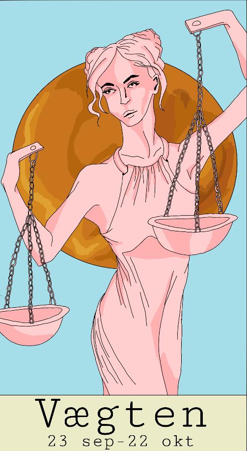 Styret af planeten Venus, er vægten charmerende og elskværdig. Du er social og også kompetent. Måske er du med i flere af Gefion’s udvalg, altid den der sætter klassefesterne i gang, eller også er du blot den der holder din vennegruppe sammen. Uanset hvad værdsætter du dine venskaber højt, og undgår konflikter. Hvis konflikter skulle opstå, så pas på at du ikke trækker dig væk, bliver passiv, eller prøver at please alt og alle.