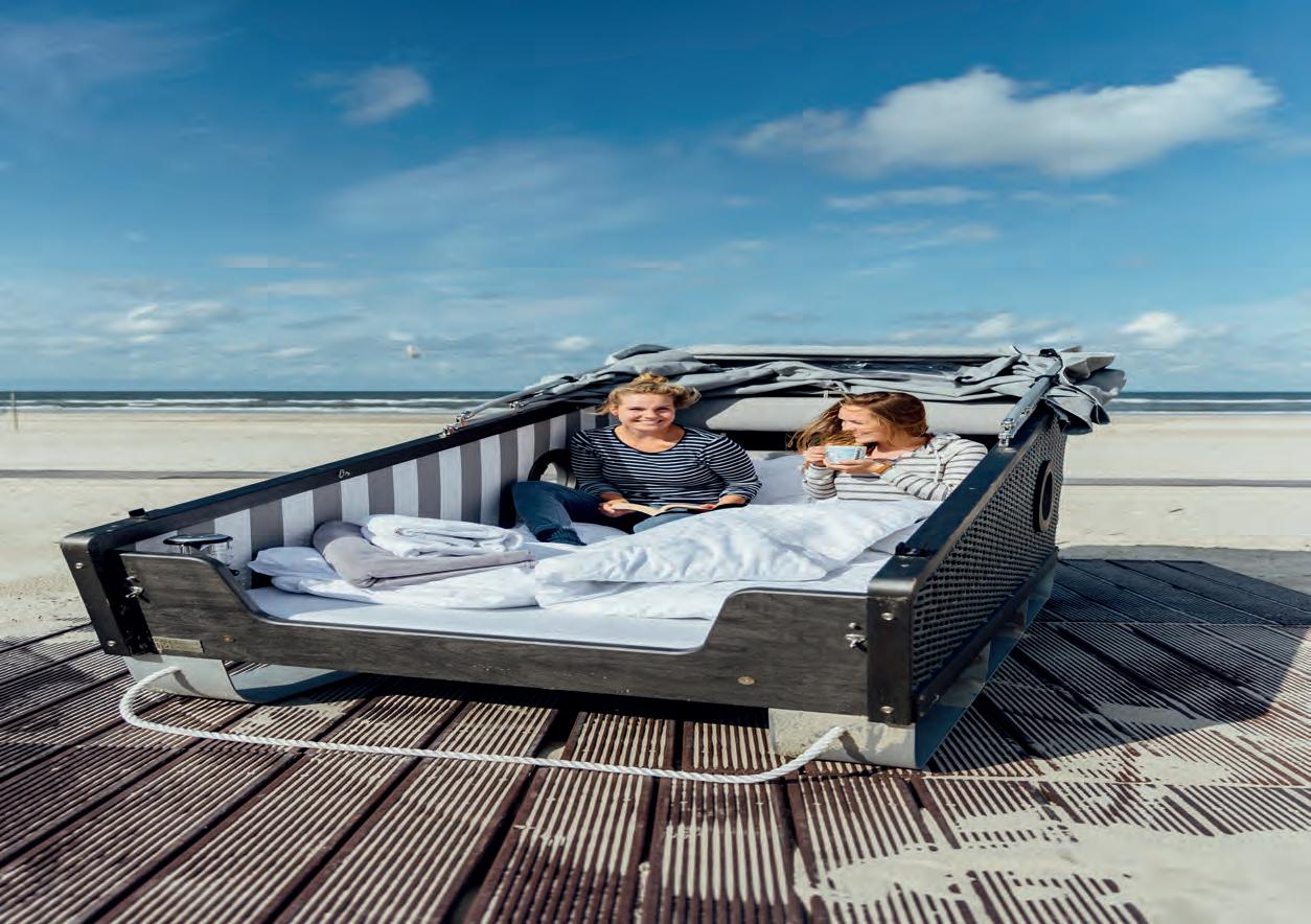 Na klar, der Strandkorb gehört zum Urlaub dazu! Bestellen Sie Ihren Korb im Lieblings korbfeld vor oder gönnen Sie sich eine Nacht im Schlafstrandkorb an unseren Stränden Weiße Düne bzw. Oase, siehe auch Seite 14 bis 17 Viele weitere Freizeitangebote können Sie schon vor Anreise buchen. Machen Sie davon Gebrauch und sichern sich die begehrten Plätze.