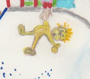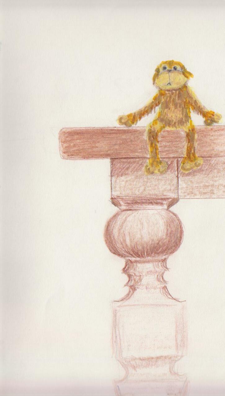 It sometimes happens to little kids that the milk comes out the wrong way. Some of the puke hit upon the monkey.