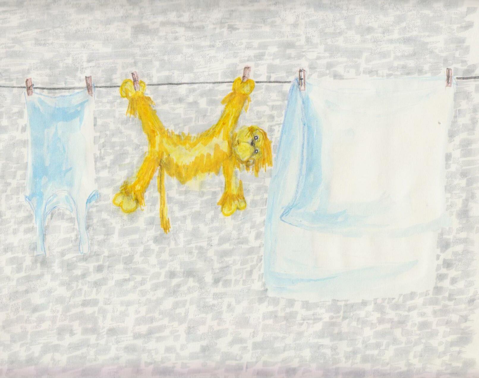 Honum er stillt upp inni í stássstofu. Í sófanum. Þar situr hann á silkipúða og tekur sig vel út. . Allir dást að honum: -Mikið er hann sætur! Og hér situr hann -…… . Gestir sem koma segja: -En hve þetta er fallegt gult apakríli. Algjör dúlla!