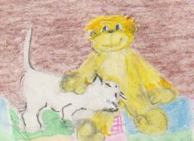 -Then, tomorrow, we shall put an ad in the paper: A yellow little monkey and a tiny white tabby, looking for their owners.