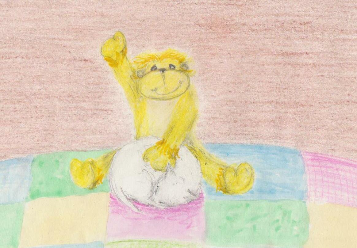 A beautiful yellow little monkey. Living-room decor. A real silk-pillow-monkey. And here he sits – just sits and sits looking so so so gorgeous .....