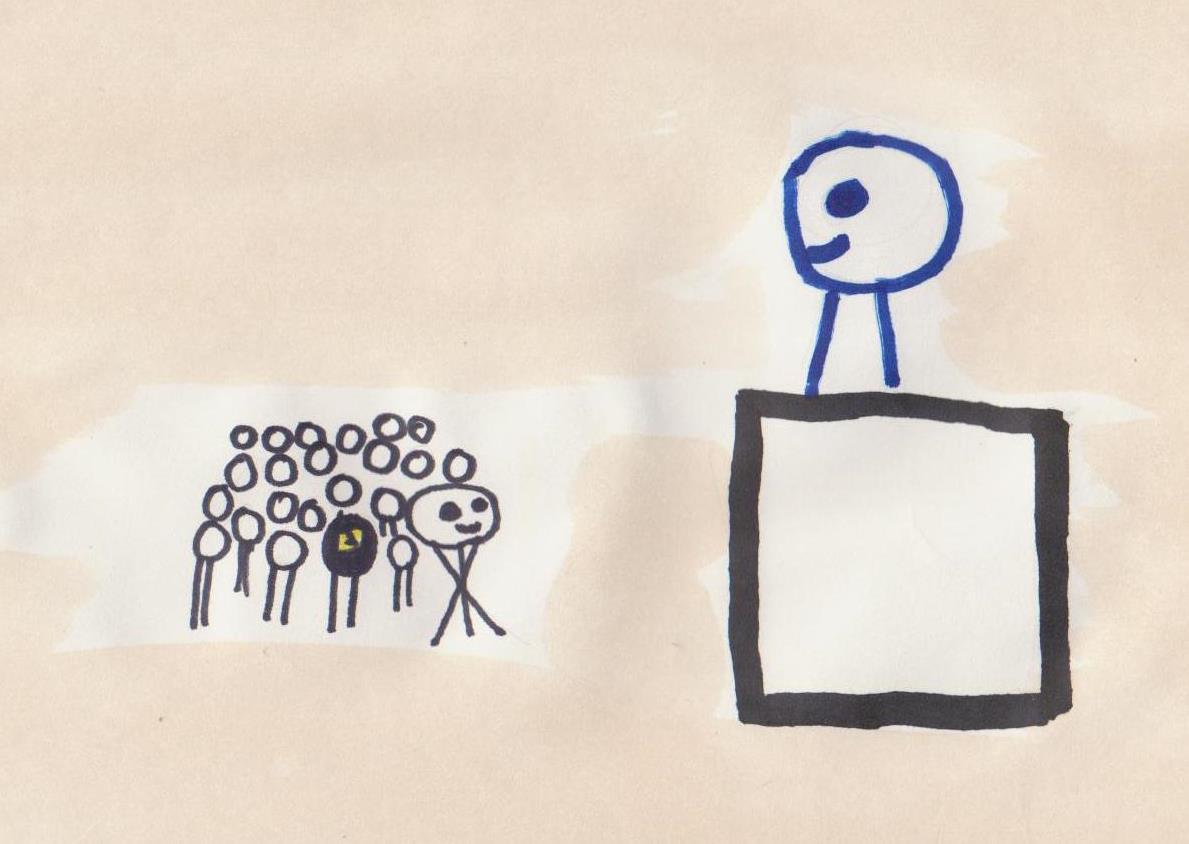 Hann segir hinum geimverunum frá þessari hugmynd.