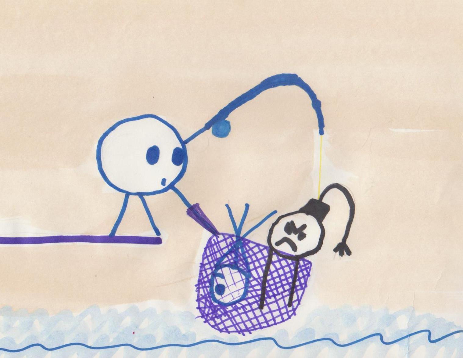 They grab Tak‘s fishing line. Tak has his pocket net ready and assumes that a huge fish has taken the bait.