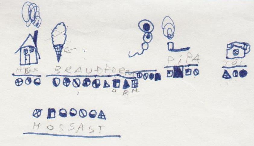 (Takstjörnuletur -- Tak´s star calligraphy) Hún var ekki vel læs á ykkar letur. Letrið okkar er nefnilega allt öðru vísi. (--Auðtrúa var nú raunar ekki heldur vel læs á Tak-stjörnu letur.--)