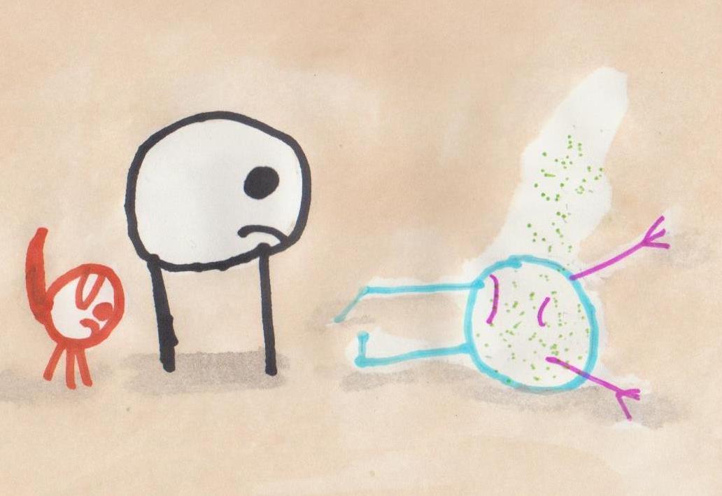 Svo lagðist hún niður og dó. -Þetta var nú slæmt, sagði krakkinn á jörðinni. -Auðvitað á maður ekki að trúa öllu sem stendur í blöðunum.