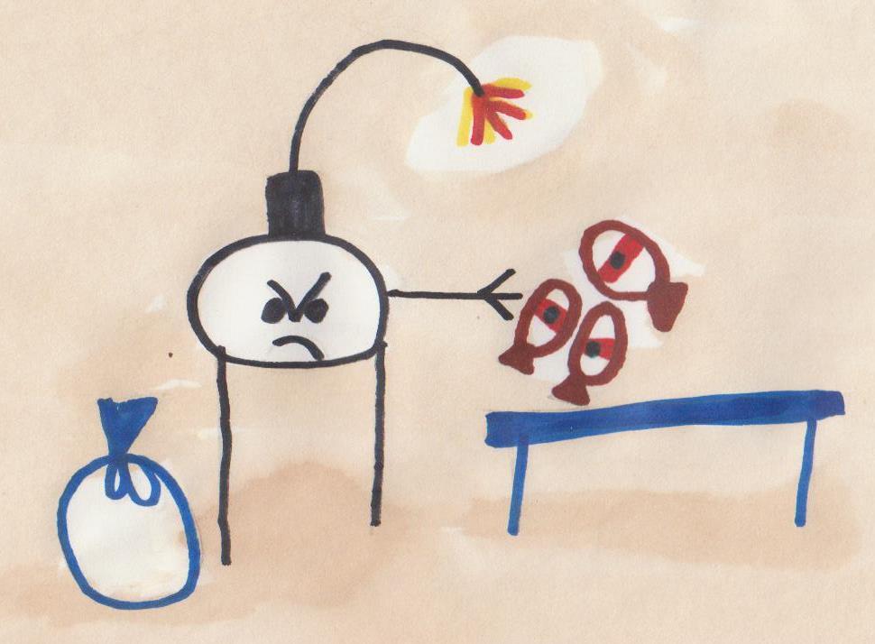 But now, when Tak gives the aliens real Easter eggs, the aliens do not trust Tak anymore. The aliens say: -You are just making practical jokes and teasing us. This is either rubber… or some pranks… or some stinky bombs inside. (eitt-hvert (neuter gender); fýlu-bomba)
