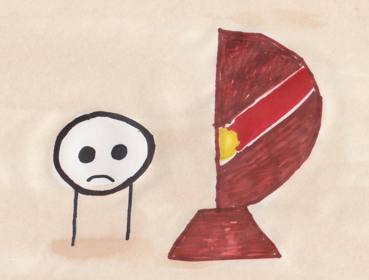 The Space-Doctor comes. -What ? How did you get this stomach ache ? Tak: -I ate half of an Easter-egg. Space-Doc: -You rarely get a stomach ache by eating just half an egg. Or what ? (geim-læknir; maga-kveisa; maga-veiki)