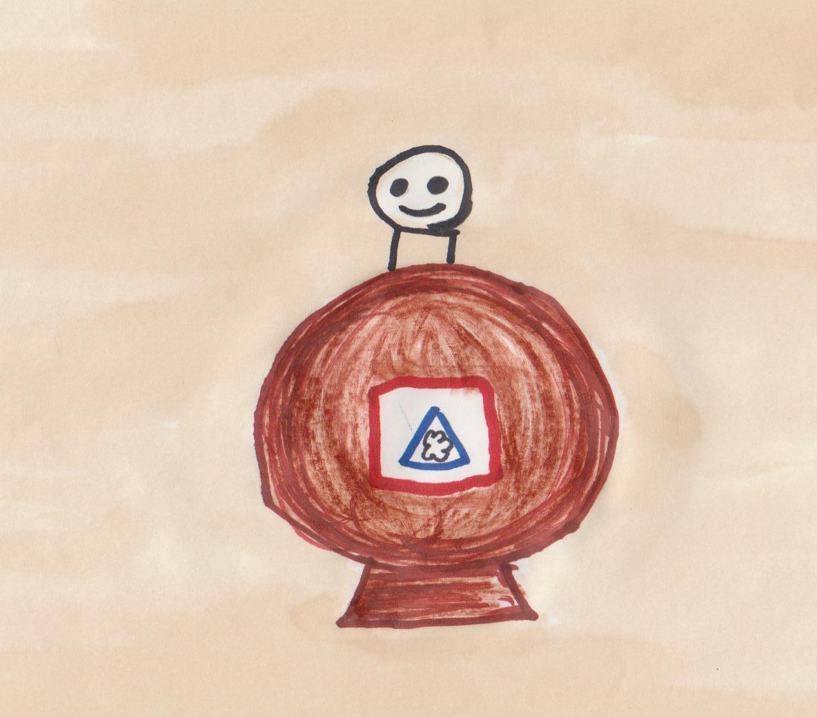 Tak stands here on the big Easter-egg and looks like an Easter-egg-decoration.