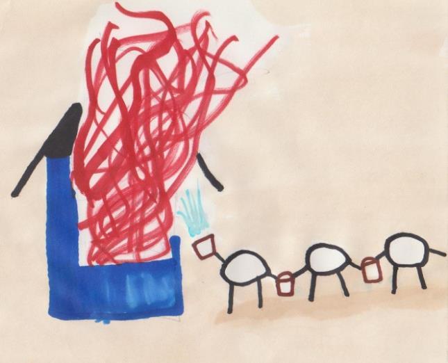 But the hand-held extinguishers are not powerful enough to reach taller houses. Tak says: -That‘s a pity. I have to make a fire engine. (dælu-bruna-bíll)