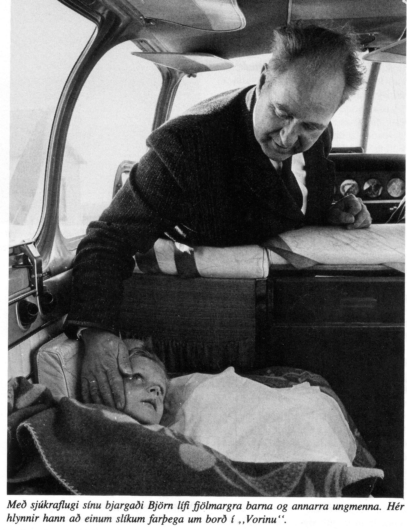 sins. Því síður uppfylltu þær kröfur sem gerðar eru til þessarar starfsemi nú á dögum. Þess vegna gat ekki öðruvísi farið en að menn neyddust æði oft til þess að ganga alveg að ystu mörkum og gera fleira en gott þótti þegar mikla neyð bar að höndum. T.d. voru ótrúlega mörg sjúkraflug sem faðir minn fór að nóttu til í vetrarmyrki á eins hreyfils Cessnunni sinni TF-HIS, sem þá var eina flugvélin á landinu, sem gat sinnt því verkefni. Gekk þetta svo langt að Agnar Kofoed Hansen flugmálastjóri hringdi eitt sinn í lækni, sem hafði þá nokkru áður með stuttu millibili beðið um og fengið slíka þjónustu og lagði áherslu á að hann takmarkaði slíkar beiðnir við algjör neyðartilfelli.