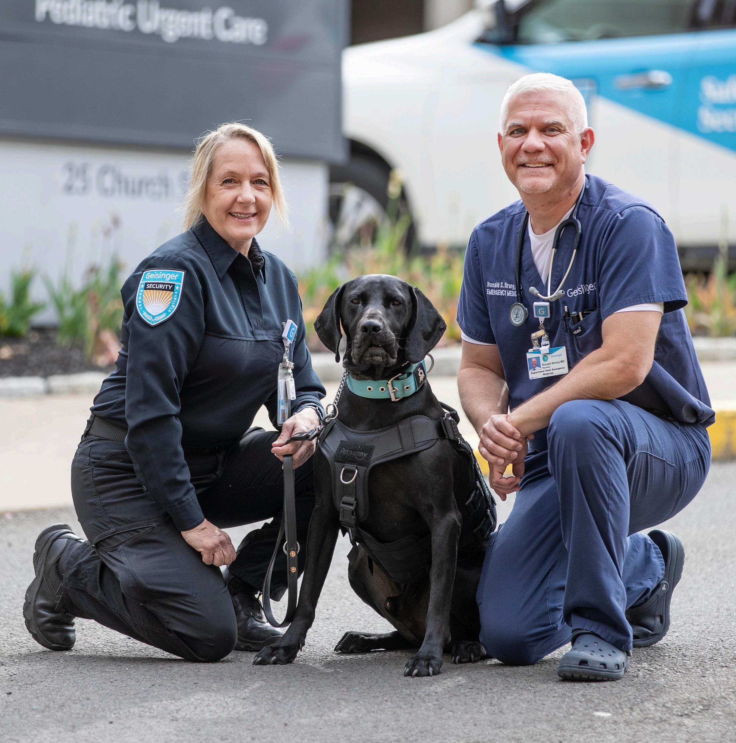 Geisinger staff and patients benefit from Jäger’s skills that range from de-escalation and the detection of dangerous items, to assisting with the tracking of at-risk patients and supporting community relations.
