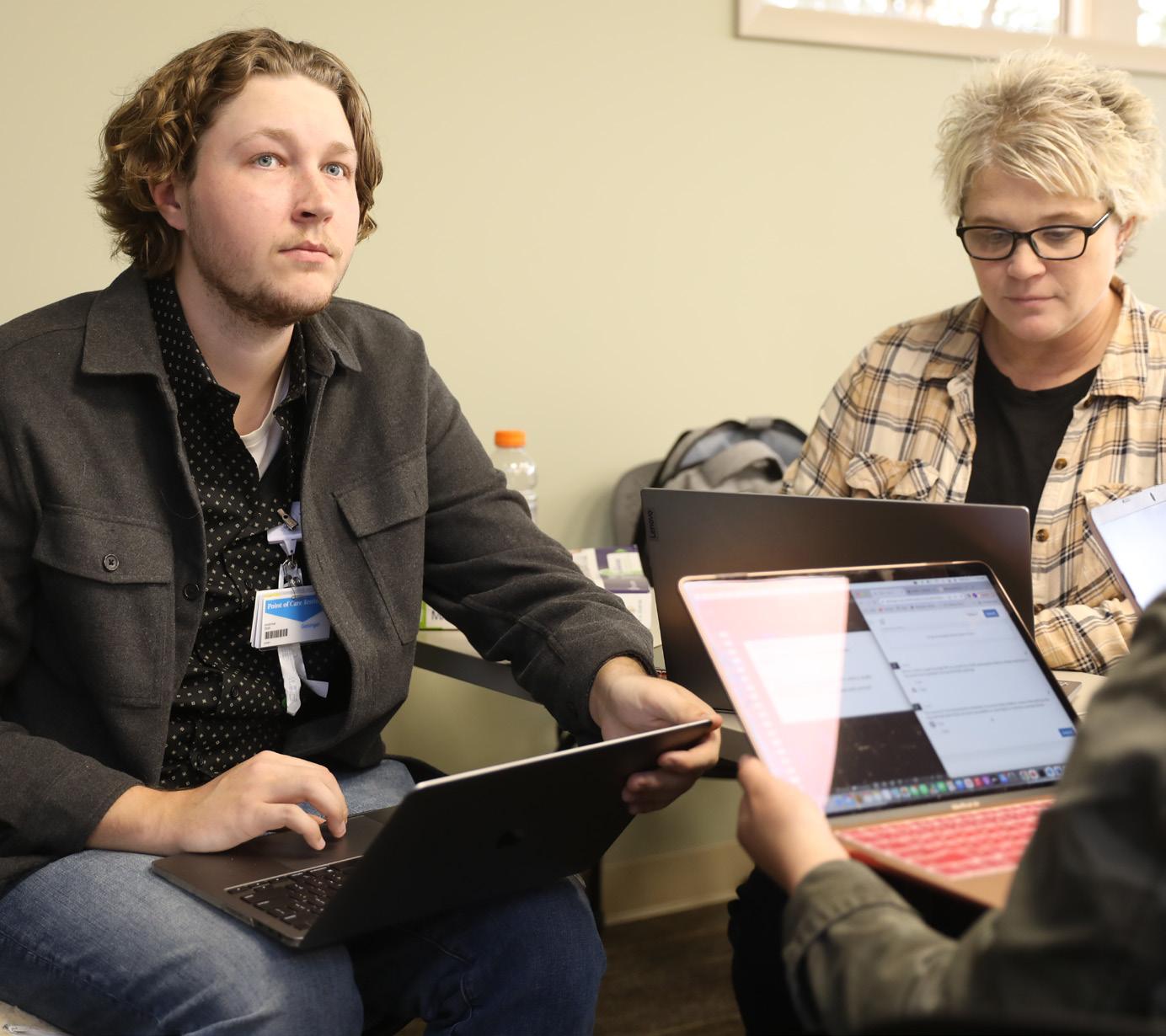 Right: Geisinger School of Nursing students Andrew Oldt and Michelle Clayton study in class.