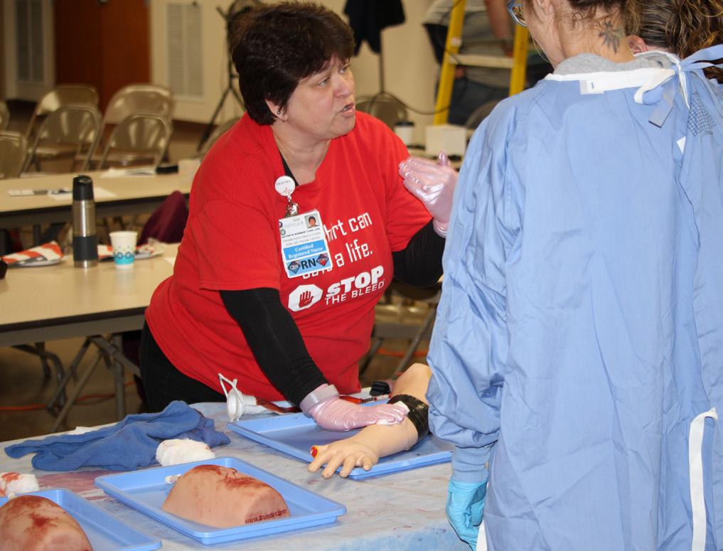 Kathryn Bommer leads a Stop the Bleed workshop.