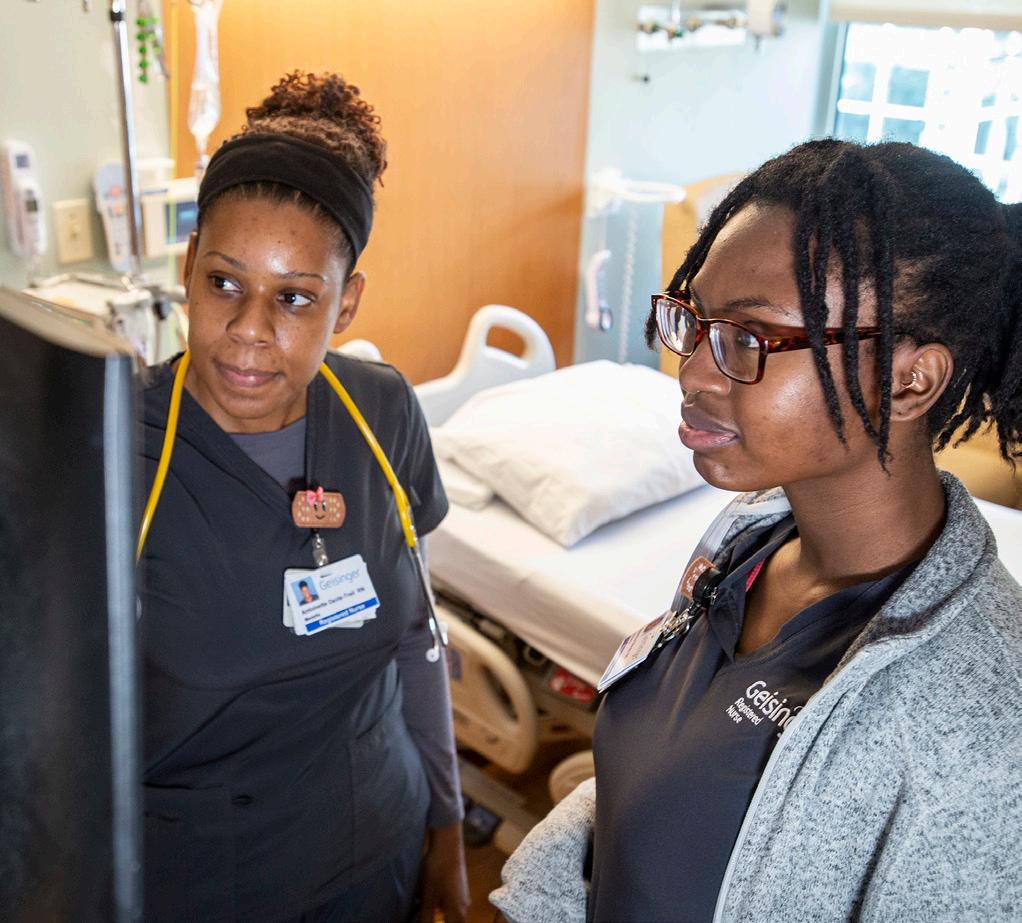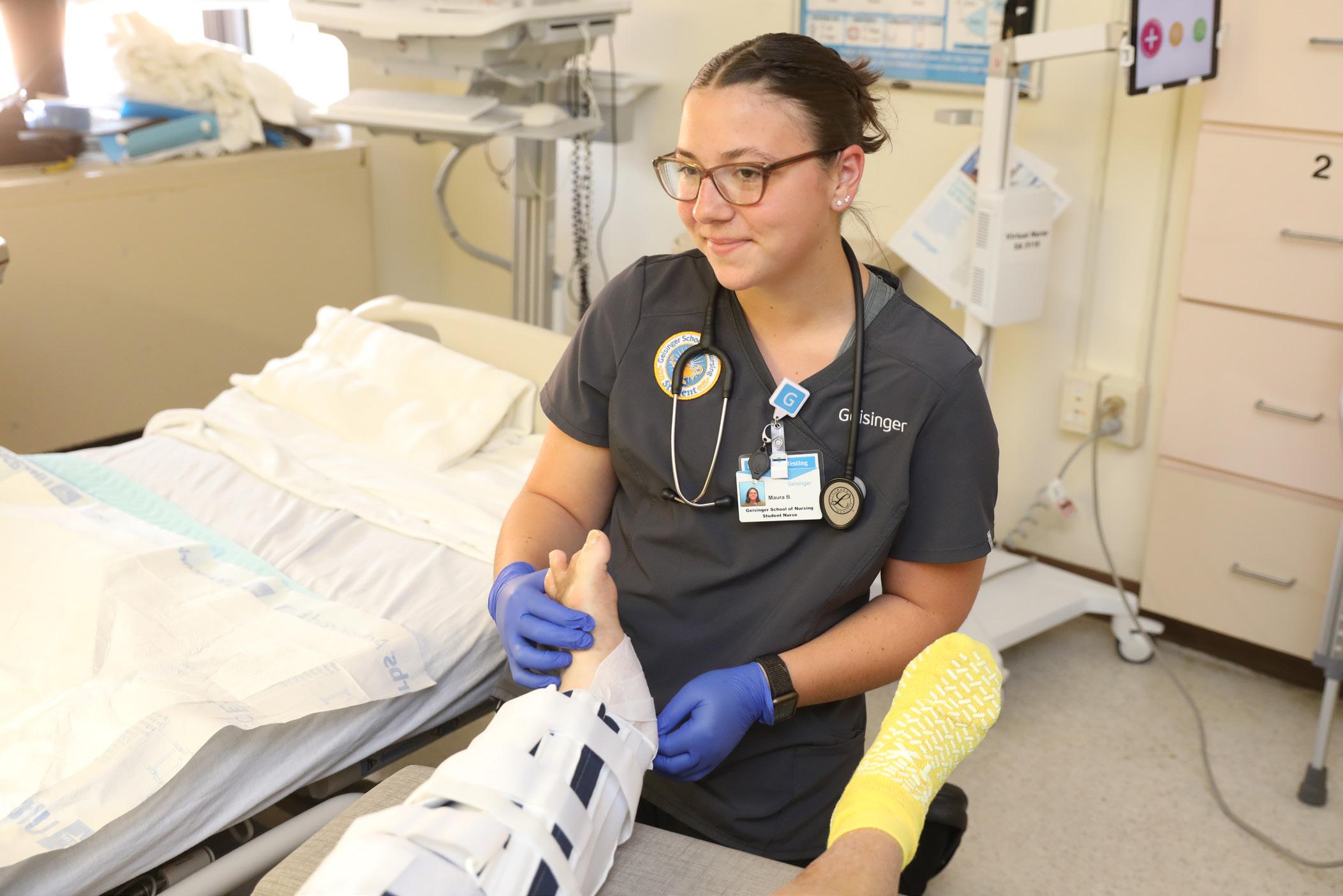 Above: Geisinger School of Nursing student Maura Bunnell works with a patient.