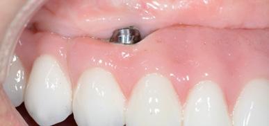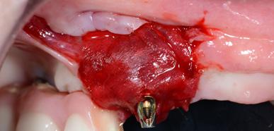 > 5 mm, bleeding and suppuration on probing were observed. Furthermore, the implant presented < 2 mm of keratinized mucosa and radiographic horizontal bone loss.