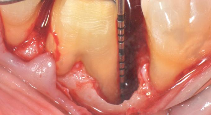 F l ap re fle c tio n sh o wing the d o n the dis t al o ≥ m m poc ket d epth