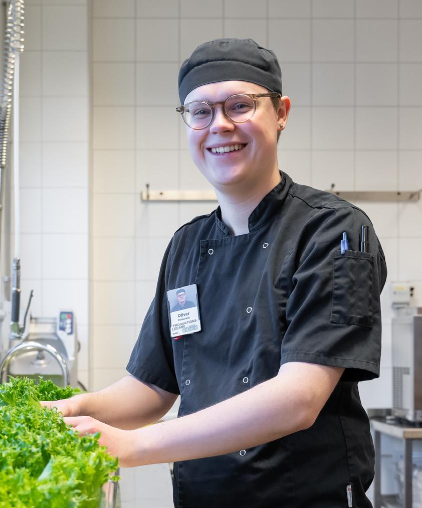 I min roll som serviceledare arbetar jag tillsammans med skiftledarna för att se till att maten vi serverar håller kvaliteten. Tillsammans ser vi också till att dagen flyter på så bra som möjligt, på ett sätt kan man säga att jag är skiftledarnas förlängda arm. Det är också jag som introducerar ny personal till avdelningen och agerar mentor. Jag sökte mig till Gekås för att få nya utmaningar och har arbetat här i ett drygt år nu. Det bästa med jobbet är samhörigheten, det känns som att alla vill nå samma mål. Det känns som att vi alla är en liten familj.