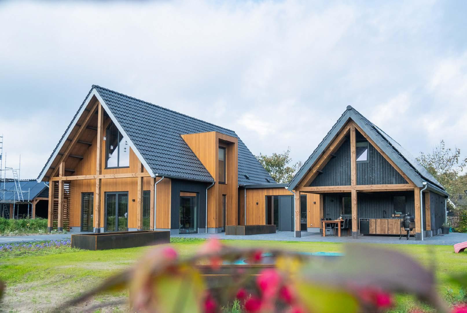Wij staan voor bouwen zonder grenzen! Van rechthoekig tot L-vorm en U-vorm, met zadeldak (puntdak) of plat dak, de mogelijkheden zijn eindeloos. Hierbij kunt u kiezen voor de originele houttinten of een woning in kleur, modern of landelijk. Ook zijn er extra opties, zoals zonnepanelen en warmtepomp installatie.